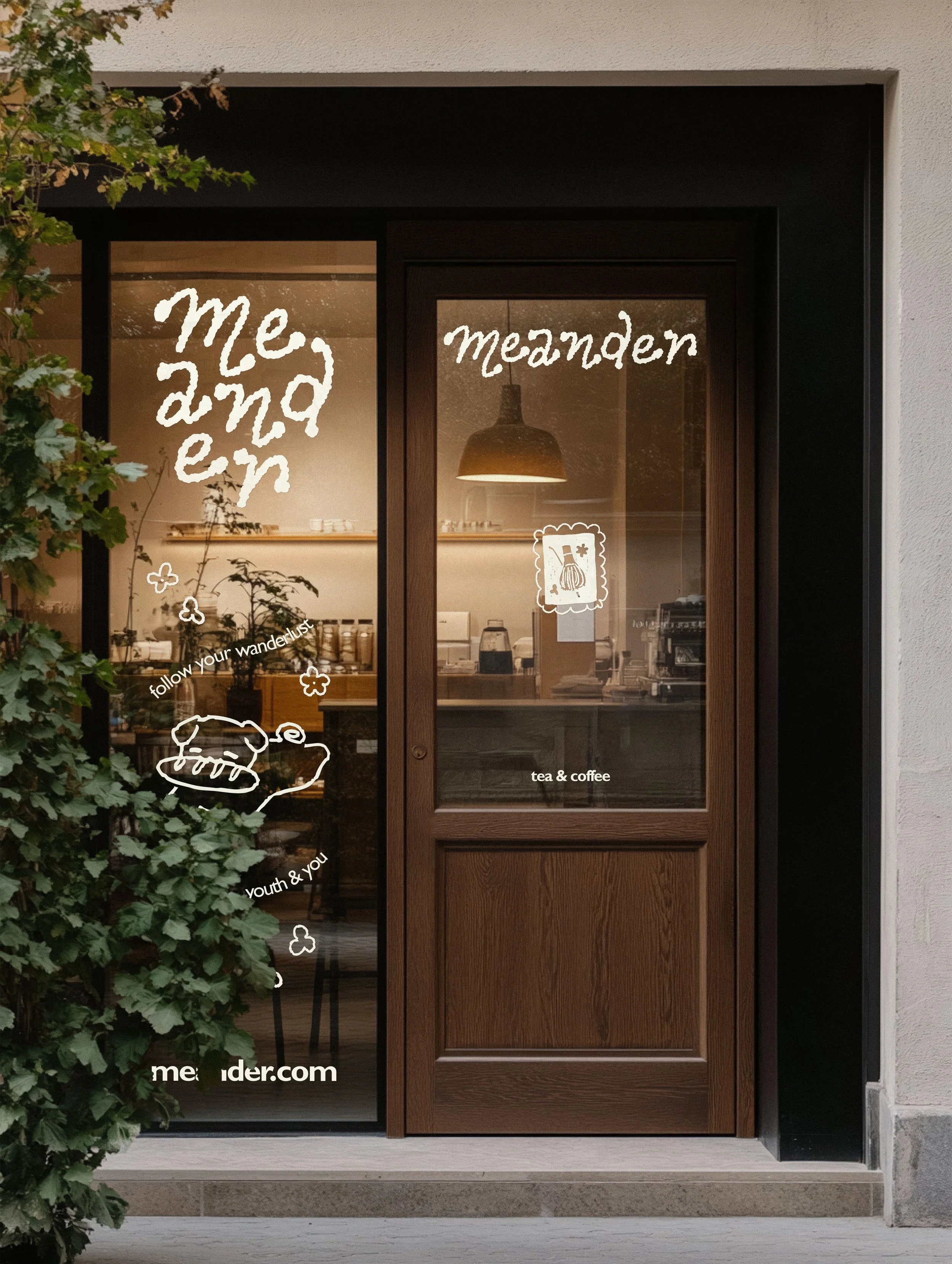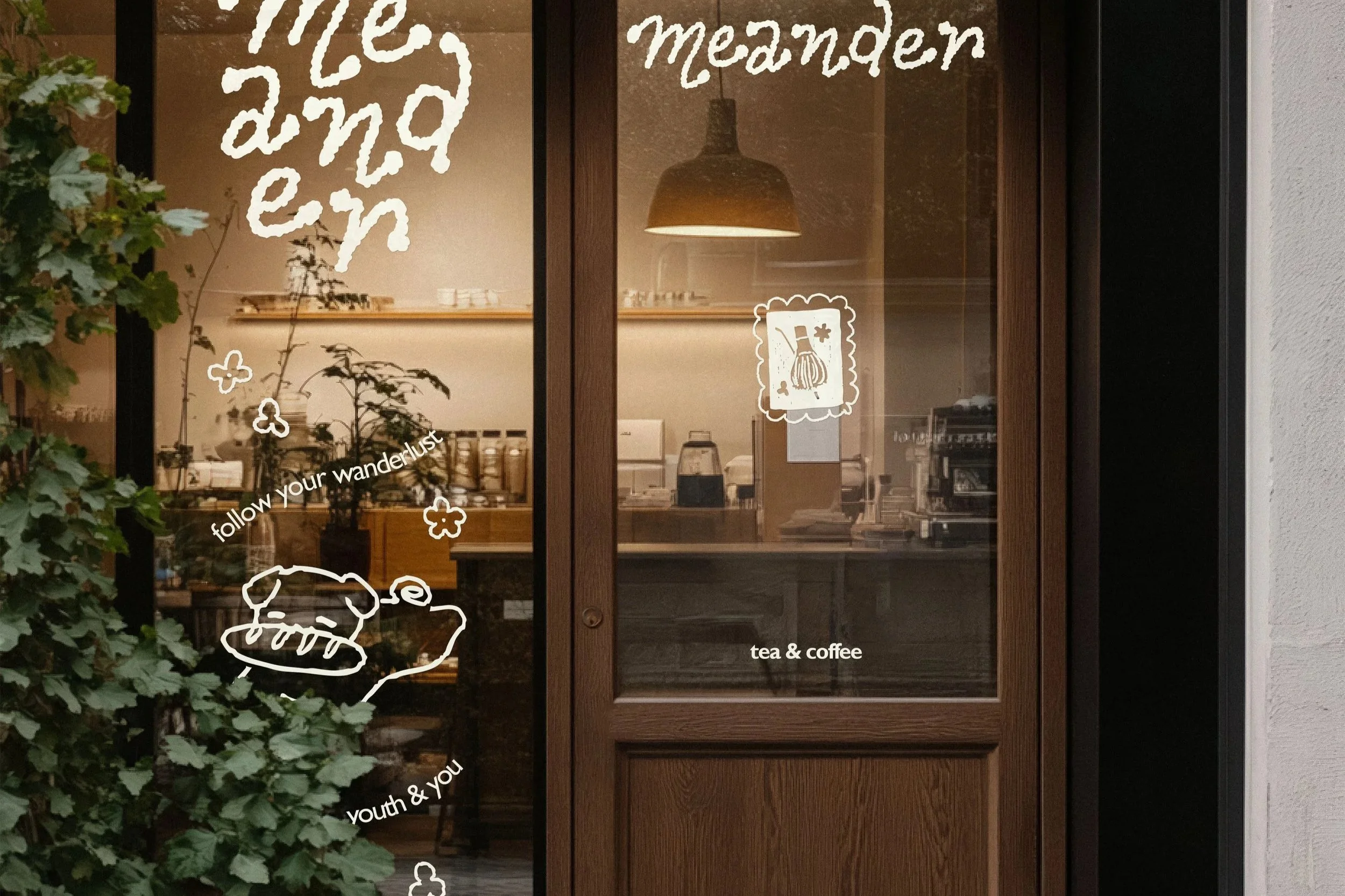 meander is a cafe blending the classic art of tea, coffee, and pastry with a modern, adventure forward style. Like the unique fusion flavors it offers, the brand messaging commits itself to being “your favorite pit stop”; just one point on your life journey.